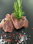 Minutensteakerl vom Reh (Keule), Olivenöl, Meersalz, Gewürze