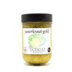 Das Sauerkraut gold ist die Schwester vom weißen Sauerkraut, die eine Zeit lang in Indien gelebt hat. Ihr hat es das Ayurveda angetan und so kam es, dass Kurkuma ihr Ein und Alles wurde. Sie ist ein wahrer Goldschatz, harmoniert wunderbar mit indischen Gerichten und ist ein exotischer Pepp zur klassischen Jause.