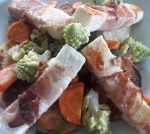 Ziegenkäse mit Speck umwickelt