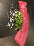 Minutensteakerl vom Junghirsch an Rosmarinmarinade