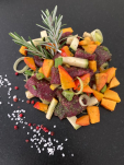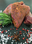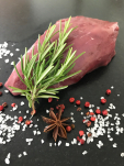 100% Wild aus freier Wildbahn (Hirschkeule), Meersalz, Knoblauch, Gewürze, Kräuter